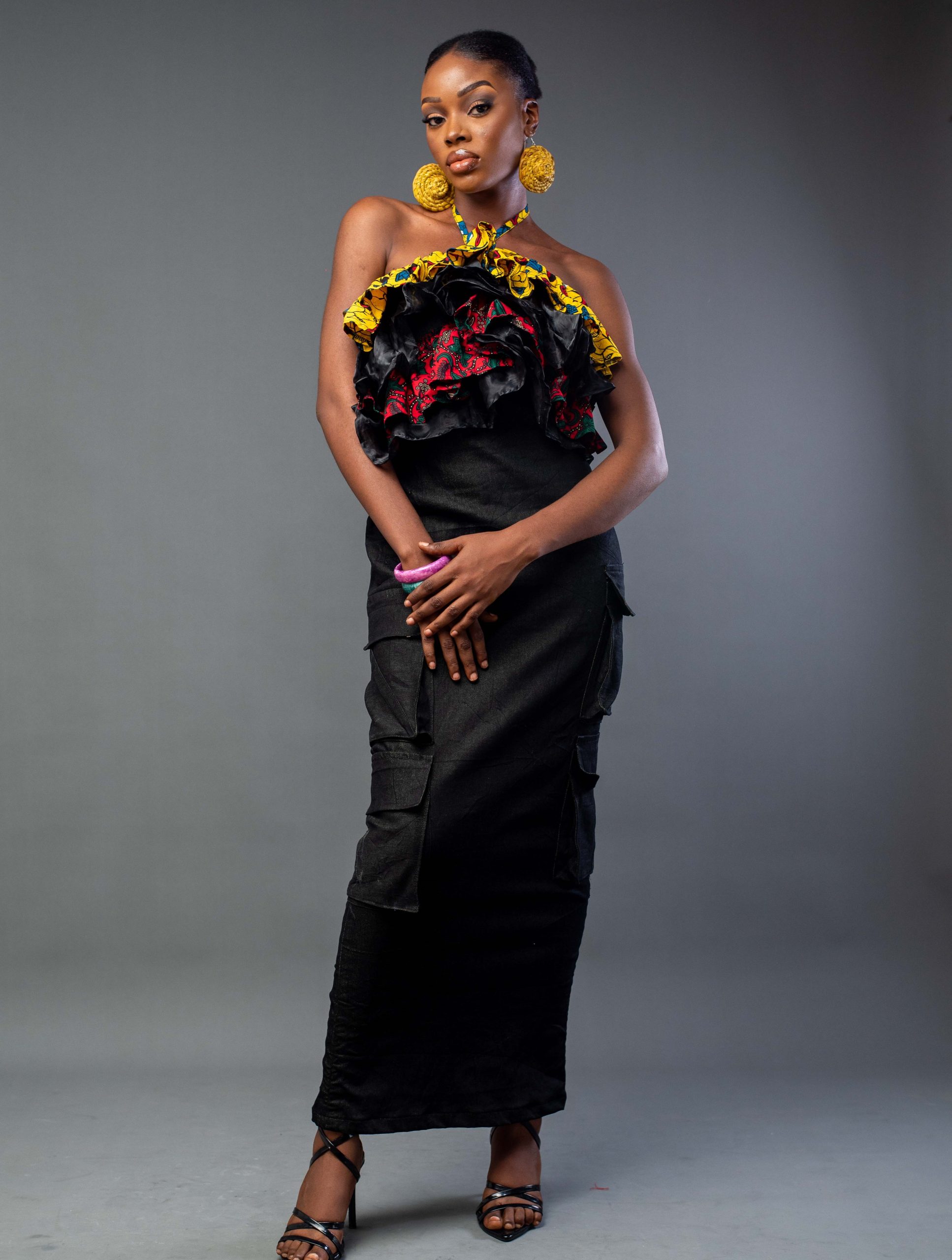 SKU006 CategoriesClothes, Dresses, Woman Tagschic dress, dress, jean and ankara dress, Soraya Dress